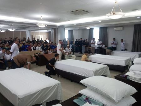 Dengan gerakan tangan yang terlatih, para peserta dari berbagai hotel dan kampus perhotelan menampilkan kemampuan terbaik mereka. Bukan sekadar merapikan tempat tidur, tetapi juga menata harmoni, disiplin, dan estetika pelayanan yang menjadi inti dari dunia hospitality.